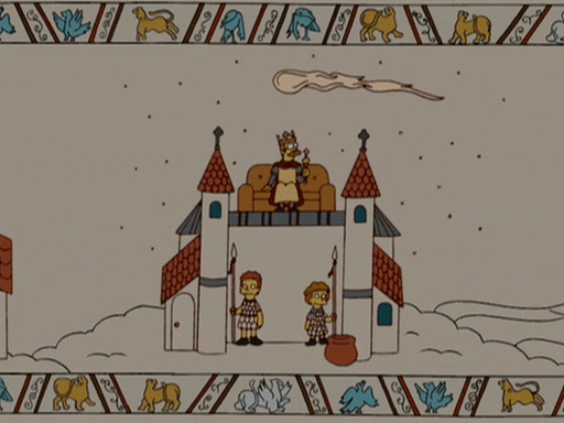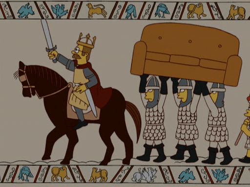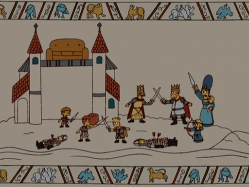 I saw this episode! I loved the couch gag! The episode was boring.I had been reading about the Bayeux tapestry being a new medievalist (gosh that sounds funny!)